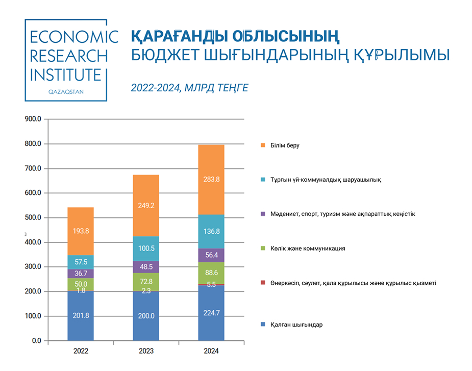 Қарағанды облысы бюджетінің шығындары (бағыттар бойынша шығыстар) 2022-2024 жылдары 541,7 млрд теңгеден 795,6 млрд теңгеге дейін 46,9%-ке ұлғайды.