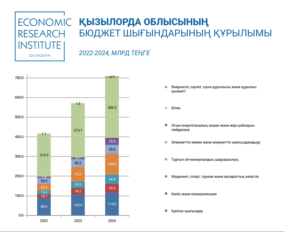 Қызылорда облысы бюджетінің шығындары (бағыттар бойынша шығыстар) 2022-2024 жылдары 415,5 млрд теңгеден 707,6 млрд теңгеге дейін 70,3%-ке ұлғайды.