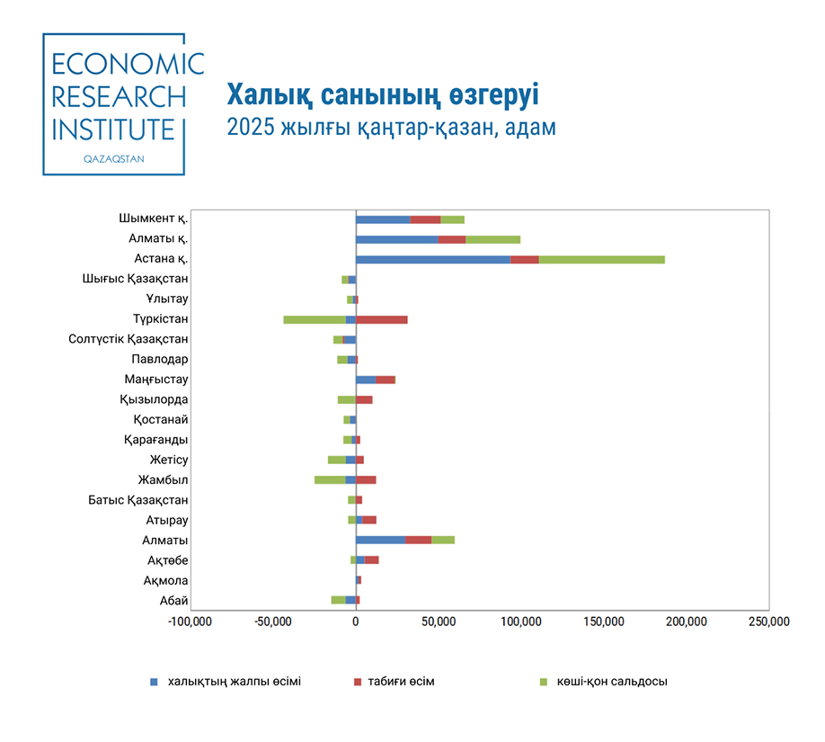Қазақстандағы өңіраралық көші-қон халықтың өңірлерден мегаполистерге кетуінен байқалады. Кейінгі бес жылда Астана қаласында көші-қон өсімі 214 627 адамға, Алматы қаласында 179 039 адамға, Шымкент қаласында 36 349 адамға жетті. Мегаполистер, ең алдымен, көрші өңірлер мен жұмыс күші шамадан тыс артып кеткен оңтүстік облыстардың тұрғындарын тартады.