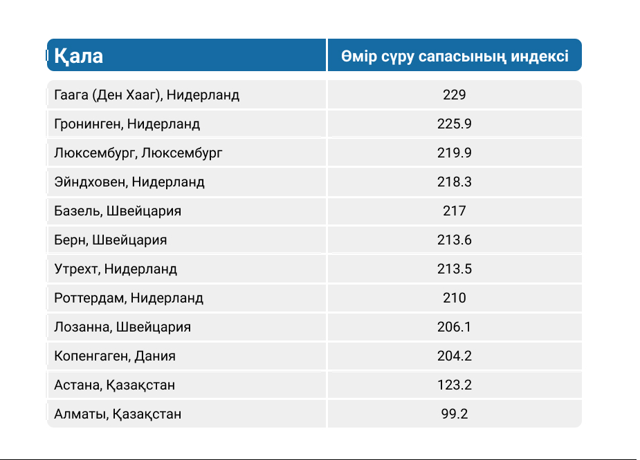 өмір сапасы бойынша үздік 10 көшбасшысына