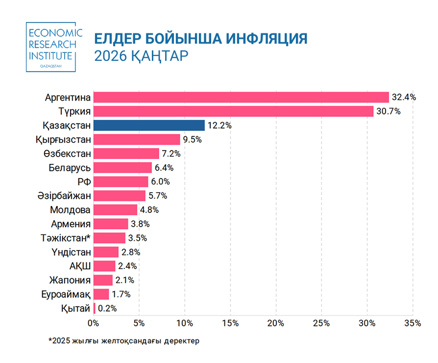 Жақын елдер және Түркия Жақын елдер арасында инфляция бойынша көшбасшы Түркия болып қалды. Мұнда жылдық инфляция қаңтар айында 30,7%-ға дейін баяулады (2025 жылғы желтоқсанда – 30,9%).