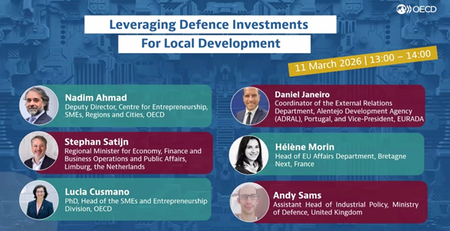 2026 жылғы 11 наурызда Экономикалық зерттеулер институтының өкілдері Экономикалық ынтымақтастық және даму ұйымы (бұдан әрі – ЭЫДҰ) ұйымдастырған «Қорғаныс инвестицияларын жергілікті даму үшін пайдалану» (Leveraging Defence Investments for Local Development) тақырыбындағы халықаралық вебинарға қатысты. Іс-шара ЭЫДҰ-ның 2026 жылғы «Жергілікті даму жөніндегі жаһандық форумына» (OECD Global Forum on Local Development 2026) дайындық аясында өтті және қорғаныс шығыстарының өсуі өңірлердің дамуына, өнеркәсіпті жаңғыртуға, жұмыс орындарын ашуға және кадрлық әлеуетті нығайтуға қалай ықпал ете алатынын талқылауға арналды.