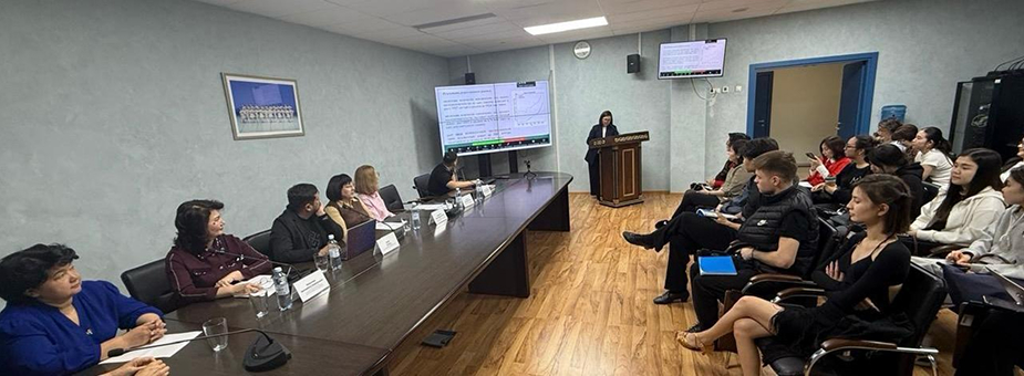 Ш. Ш. Жақыпова «Қазіргі уақытта ҚР инвестициялық эко-жүйесін дамыту» тақырыбында баяндама жасады.
