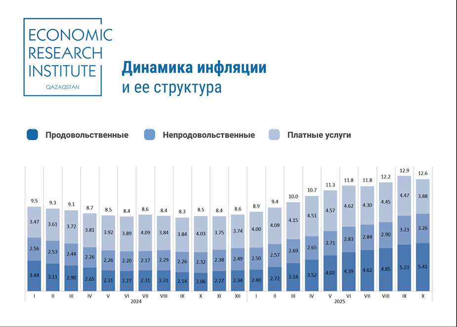 Потребительская инфляция в октябре составила 12,6% в годовом выражении. Основной рост продемонстрировали продовольственные товары, увеличившись за год на 13,5%. В октябре 2025 года инфляция в стране составила: - 12,6% по отношению к октябрю прошлого года (12,9% в прошлом месяце); - 0,5% по отношению к сентябрю текущего года (1,1% в прошлом месяце).
