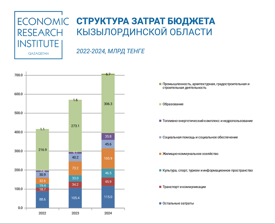 Такая динамика затрат указывает на повышение внимания к развитию инфраструктуры и энергетики в Кызылординской области.