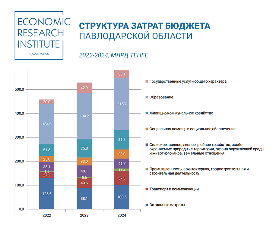 Затраты (расходы по направлениям) бюджета Павлодарской области за 2022-2024 годы увеличились на 26,6% – с 457,7 млрд тенге до 579,5 млрд тенге.