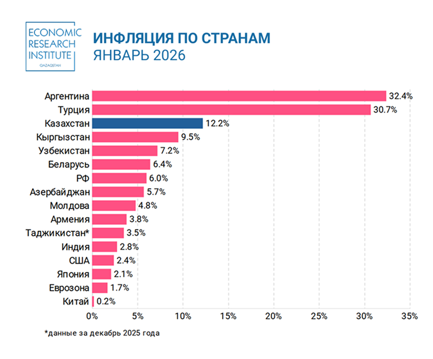 Ближайшие страны и Турция Среди ближайших стран лидером по инфляции остается Турция. Годовая инфляция в январе замедлилась до 30,7% (в декабре 2025 года – 30,9%).